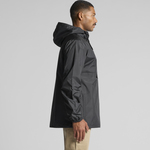 Meet the AS Colour Cyrus Windbreaker. Regular fitting in light weight 100% recycled polyester rip-stop. Features a pullover hood, rubber headphone patch, adjustable hem drawcord, water resistance, and packable design with YKK zip and invisible pockets.